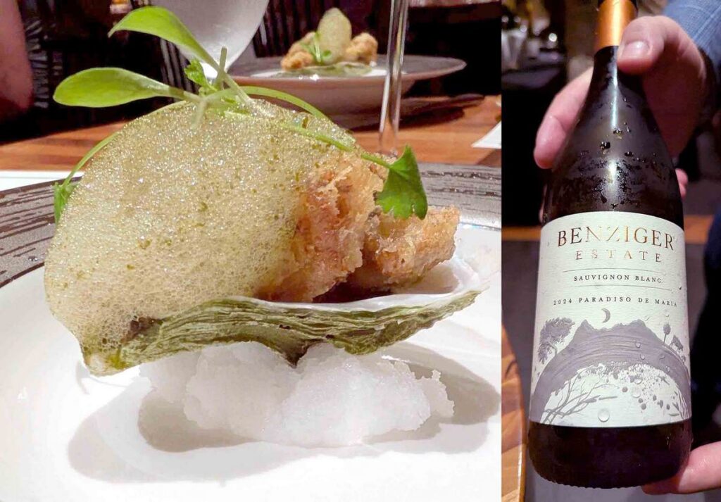 The morsel — really just one mouthful — was delicious and beautifully balanced. The accompnaying wine was one of Benziger’s best. The 2024 Paradiso de Maria Sauvignon Blanc — initially made by Chris Benziger’s brother for his wife, Maria — was a Sancerre-style sauvignon blanc with a nice flinty minerality and fresh punch of acidity.