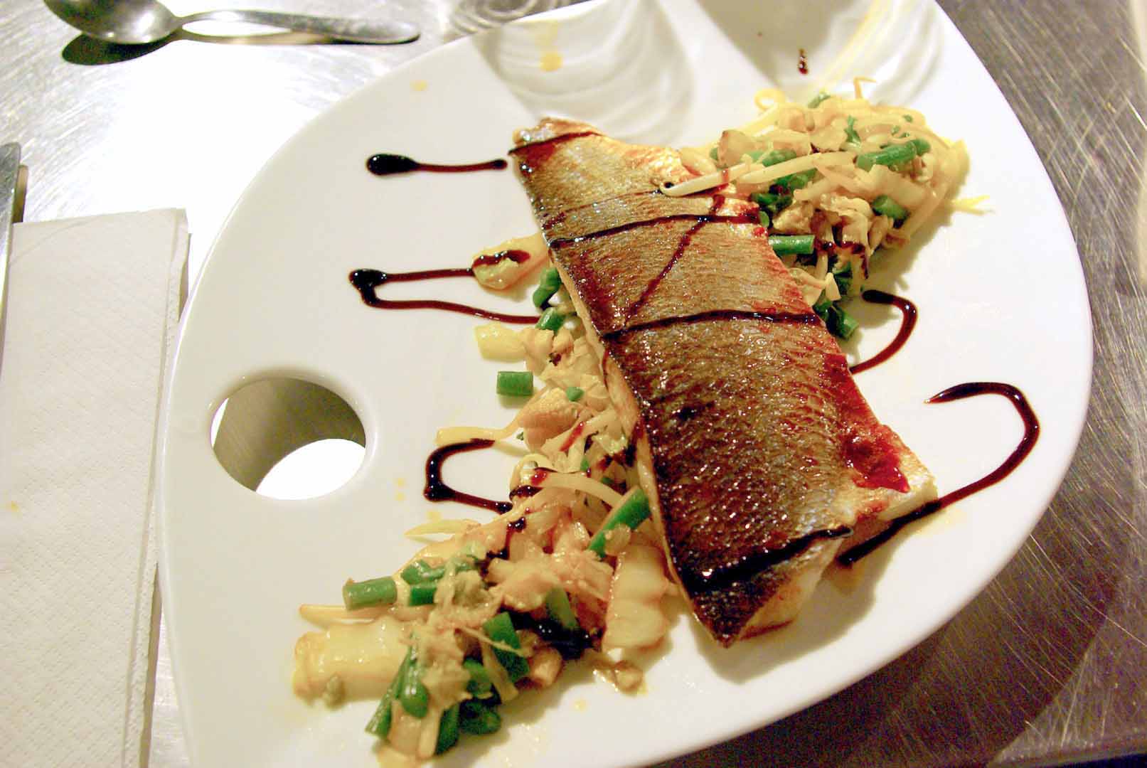 After a demonstration in plating (complete with a decorative drizzle of balsamic vinegar), we sat down to eat and the instructor passed sliced baguettes and poured glasses of wine. (Ah, lunch in France.) My weak French made me a less than scintillating dining companion, but it was adequate enough to understand that the instructor was explaining how to generalize our new skills for different fish and vegetables. Besides, the women were more interested in the handsome chef and the obvious bachelor.