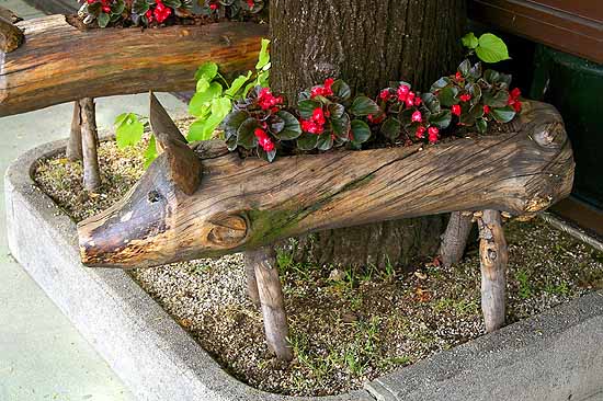 San Daniele del Friuli is a beautiful little community about 20 kilometers southwest of the big industrial city of Udine, located in the hill country where dry-aged hams are a tradition. Making prosciutto is the principal business of the town – perhaps followed by eating it. Even some of the flower planters in town are in the shape of pigs.