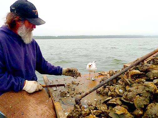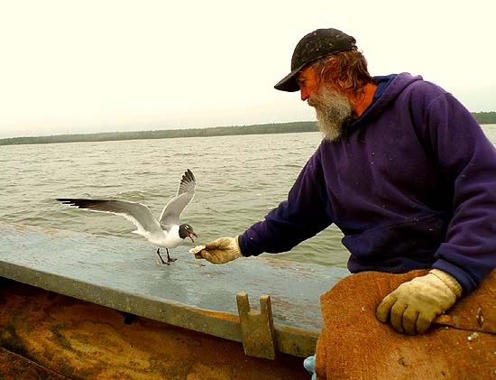 The cracked oysters (it’s easy to smash a shell by accident) became bird food for the gulls that follow the boat. One laughing gull has been coming to Schoelles’ boat every morning for two years. How does he know it’s the same gull? He doesn’t – not for sure – but the two seem to have an understanding.