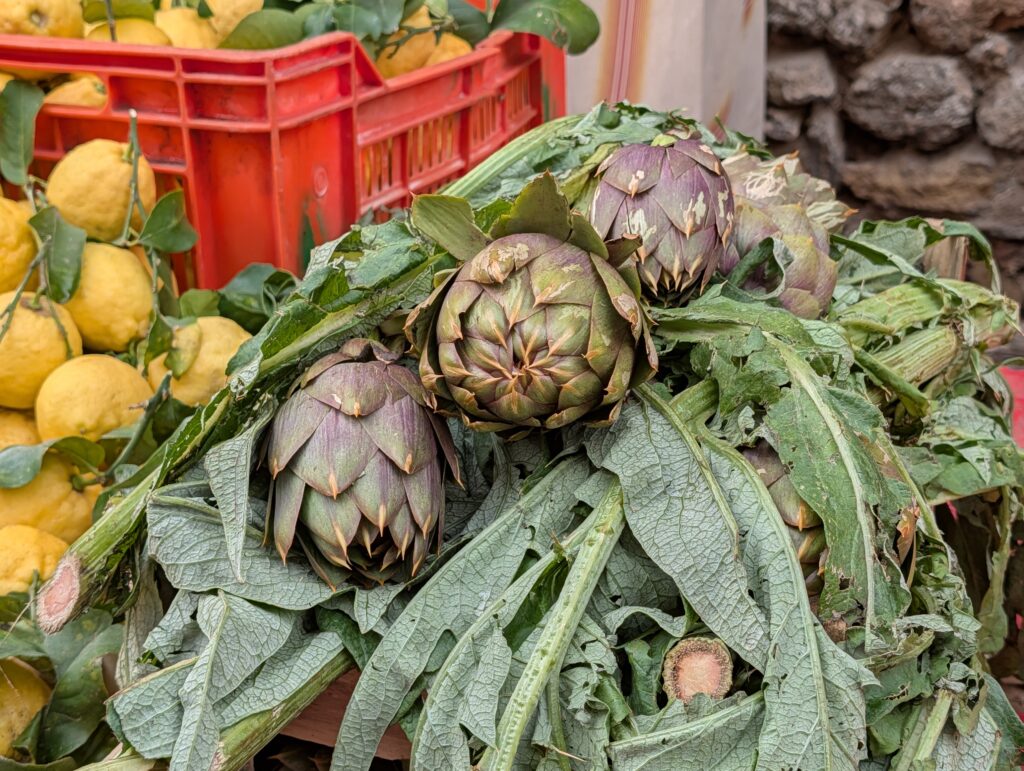 It’s possible that the greatest art of Sicily is the display of food, which is rearranged every morning. This being March, the stalls are filled with gorgeous artichokes, lemons and blood oranges, and other colorful vegetables.